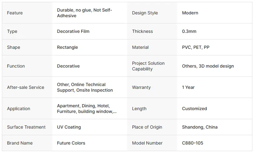 නවීන solid න වර්ණ බිබිලි චිත්රපටය යනු මූලික අණුක ප්ලාස්ටික් ද්රව්ය පාදම ලෙස භාවිතා කරන අලංකාර චිත්රපට ද්රව්යයකි. වර්ණ ගැන්වීමේ හා ආලේපන ප්රතිකාර වලින් පසුව, "බිබිලි ක්රියාවලිය" තුළින් එය මැලියම් ලබා ගනී (රික්ත adsions ිල්ස්ට්රොට් අච්චුව) තුළින්. එහි විශේෂාංග "ඒකාකාර වර්ණය, ශක්තිමත් ප්ලාස්ටික්කරණය සහ අධික පිරිවැය-effectiveness ලදායීතාවය", ගෘහ භාණ්ඩ, සැරසිලි සහ ඇසුරුම්කරණය වැනි ක්ෂේත්රවල බහුලව භාවිතා වේ. එය නවීන අවම විලාසිතාවේ සැලසුමේ බහුලව භාවිතා වන ද්රව්ය වලින් එකකි.