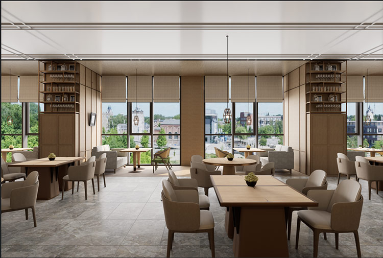* උණුසුම් උදාසීන වර්ණ: නවීනත්වය සමඟ රතු-දුඹුරු මිශ්ර කරන කැරමල් කළ නාද, නොස්ටැල්ජික් වාණිජ පරිසරයක් නිර්මාණය කිරීම සඳහා සුදුසු වේ.